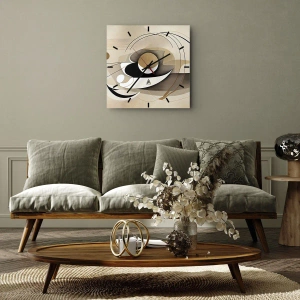 Väggklocka - Klocka på glas - Komposition: essensen av saker och ting - 40x40 cm