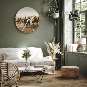 Väggklocka - Klocka på glas - Galopperande hästar mot bakgrund av ökendyner - 30x30cm - Fri som vinden - Modern väggdekoration för vardagsrum, kök och sovrum ARTTOR