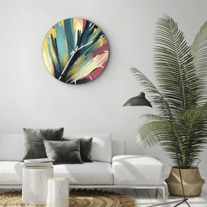 Väggklocka - Klocka på glas - Komposition - en explosion av glädje - 40x40 cm