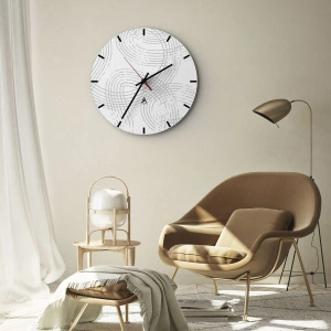 Klockan är tillverkad av glas med 4mm tjocklek. Klockans utförandeteknik överensstämmer med säkerhetsklassen 2B2 enligt standarden PN-EN 12600:2004 vilket garanterar slagtålighet. Klocka på glas är klar för upphängning - är försedd med metallögla fastsatt på klockans baksida samt en distans av skum som justerar avståndet mellan klockan och väggen. Klockan har en tyst steglös mekanism som strömförsörjs med 1,5V AA batteri (batteriet ingår inte).