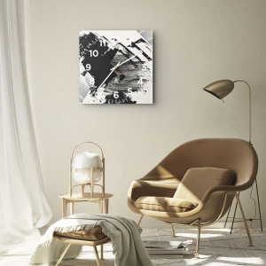 Väggklocka - Klocka på glas - Abstraktion - uttrycket av svart - 40x40 cm