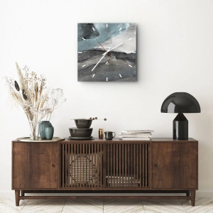Väggklocka - Klocka på glas - Abstraktion: stenar och is - 40x40 cm