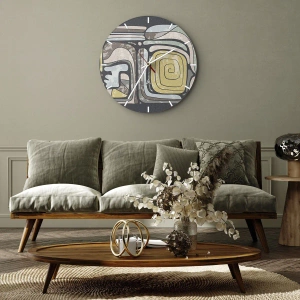 Väggklocka - Klocka på glas - Abstraktion i en förcolumbiansk anda - 30x30 cm