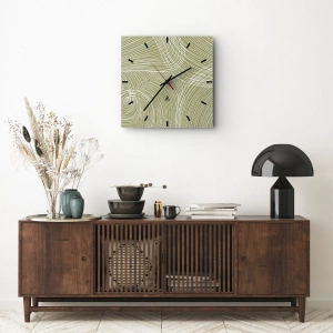 Väggklocka - Klocka på glas - Intrikat abstraktion i vitt - 40x40 cm