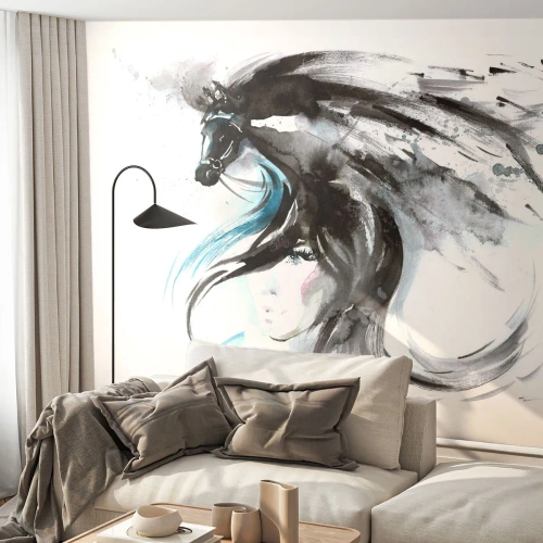 Fototapet på mått Självhäftande Deluxe Sticker - Svarta prinsens galopp - Djur, Häst, Grafik