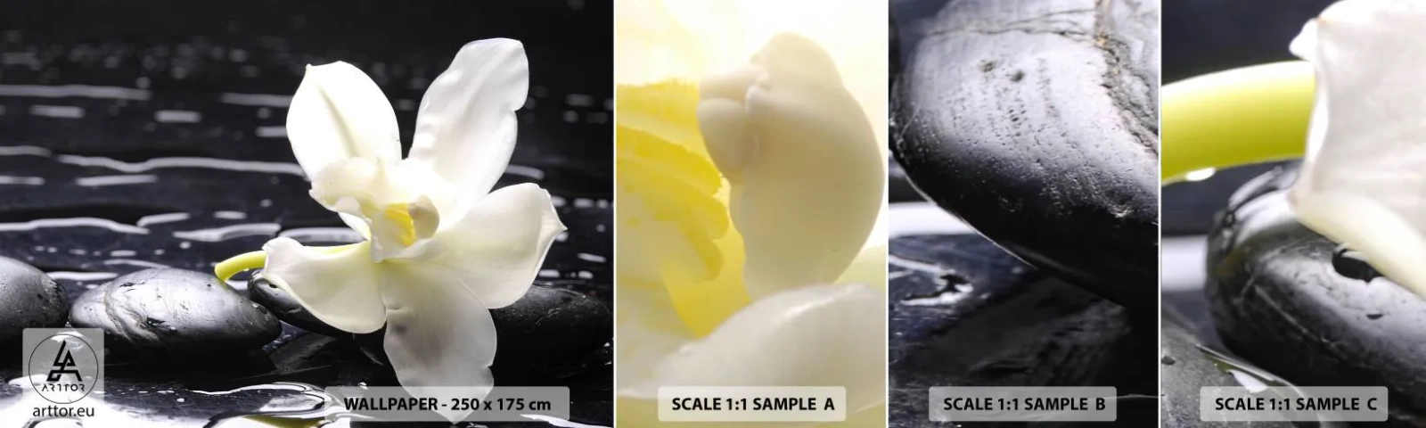 Fototapet Prov Standard Eco - Ett studie i svart och vit - Blommor, Stenar, Orkide - 100x30 cm