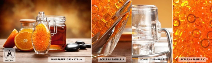Fototapet Prov Standard Eco - Soliga smaker och aromer - Gastronomi, Orange, Burk Med Honung - 100x30 cm