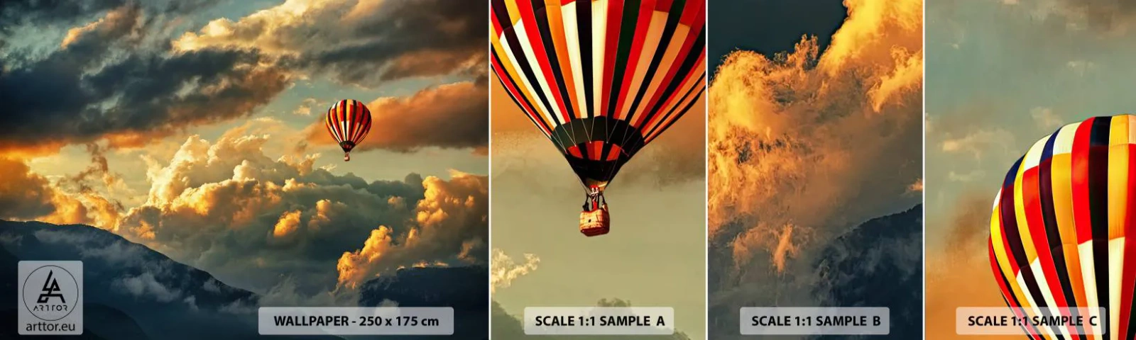 Fototapet Prov Standard Eco - Jag flyger för jag vill - Abstraktion, Ballongflygning, Berg - 100x30 cm