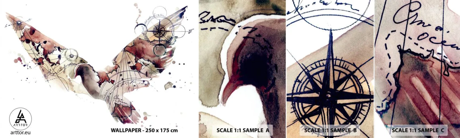 Fototapet Prov Standard Eco - Luftburen vandrare - Fåglar, Duva, Abstraktion - 100x30 cm