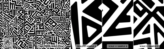 Fototapet Prov Standard Eco - Prekolumbisk komposition - Abstraktion, Bit, Svartvitt - 100x30 cm
