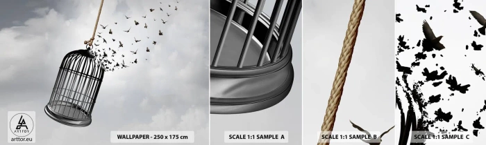 Fototapet Prov Standard Eco - Tro...Hopp...Frihet! - Abstraktion, Fåglar, Bit - 100x30 cm