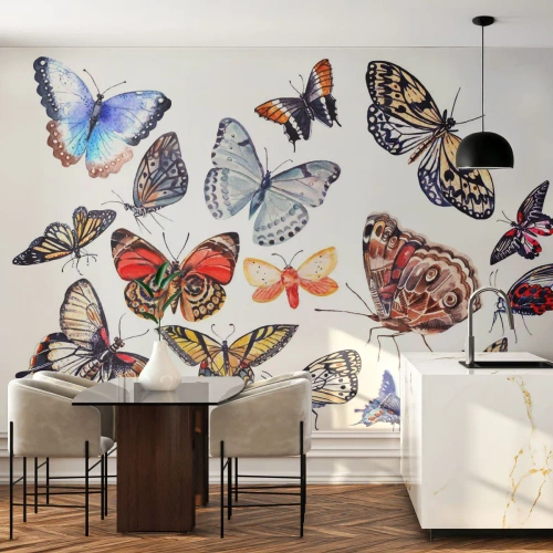 Fototapet Premium Canvas - Färgglada fjärilar - För barn, Färgglada fjärilar, Grafik - 500x350 cm