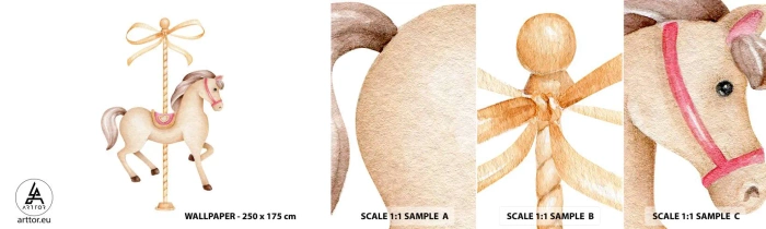 Fototapet Prov Standard Eco - Med en graciös trav - Häst, Merry-go-round, Flickaktigt - 100x30 cm
