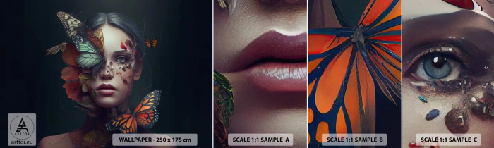 Fototapet Prov Standard Eco - En underbar metamorfos - Fjärilar, Ansikte, Kvinna - 100x30 cm