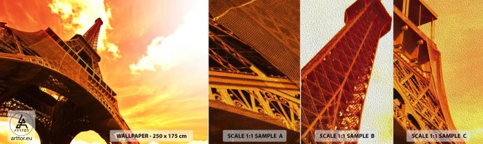 Provbit av fototapet Premium Sand - Monumentalt, ty solförgyllt - Stad, Paris, Eiffeltornet - 100x30 cm