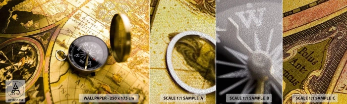 Provbit av fototapet Premium Sand - Kanske till världens ände? - Resor, Världskartor, Kompass - 100x30 cm