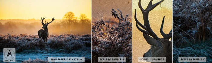 Provbit av fototapet Premium Sand - Krönt på sin mark - Landskap, Djur, Rådjur - 100x30 cm