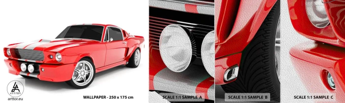 Provbit av fototapet Premium Sand - Mustang snabb som vinden - Bil, Veteranbil, Mustang bil 1967 - 100x30 cm