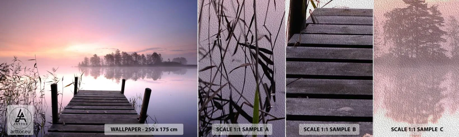 Provbit av fototapet Premium Sand - Ur liljedimman... - Landskap, Soluppgång, Sjö - 100x30 cm