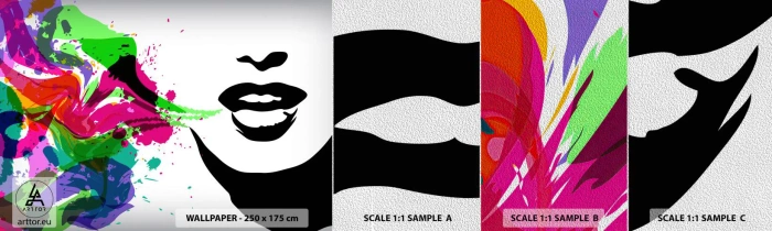 Provbit av fototapet Premium Sand - Berättelse i regnbågens färger - Abstraktion, Mun, Färgglad grafik - 100x30 cm