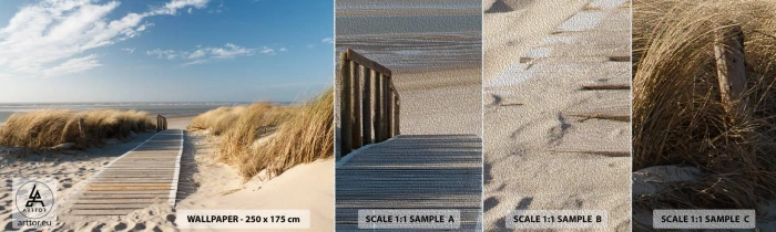 Innan du bestämmer dig för en fototapet i full storlek PREMIUM SAND , uppmuntrar vi dig att beställa ett materialprov i följande dimensioner: 100x30 cmTack vare provet kan du kontrollera materialets kvalitet live, se färgåtergivningen, känna ytstrukturen och bedöma tjockleken på materialet, vilket hjälper dig att fatta ett välgrundat beslut om att välja den bästa fototapeten för din inredning.