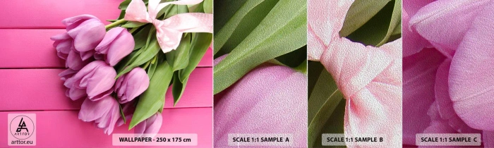Provbit av fototapet Premium Sand - Just för dig - Blommor, Tulpaner, Blombukett - 100x30 cm