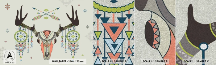Provbit av fototapet Premium Sand - Indianjägares trofé - Abstraktion, Rådjur, Boho - 100x30 cm