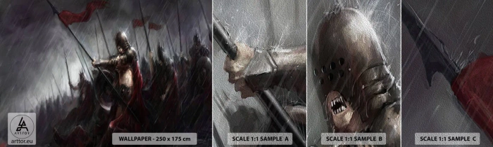 Provbit av fototapet Premium Sand - Förbipasseraren, hälsa Sparta... - Riddare i rustning, Armé, Abstraktion - 100x30 cm