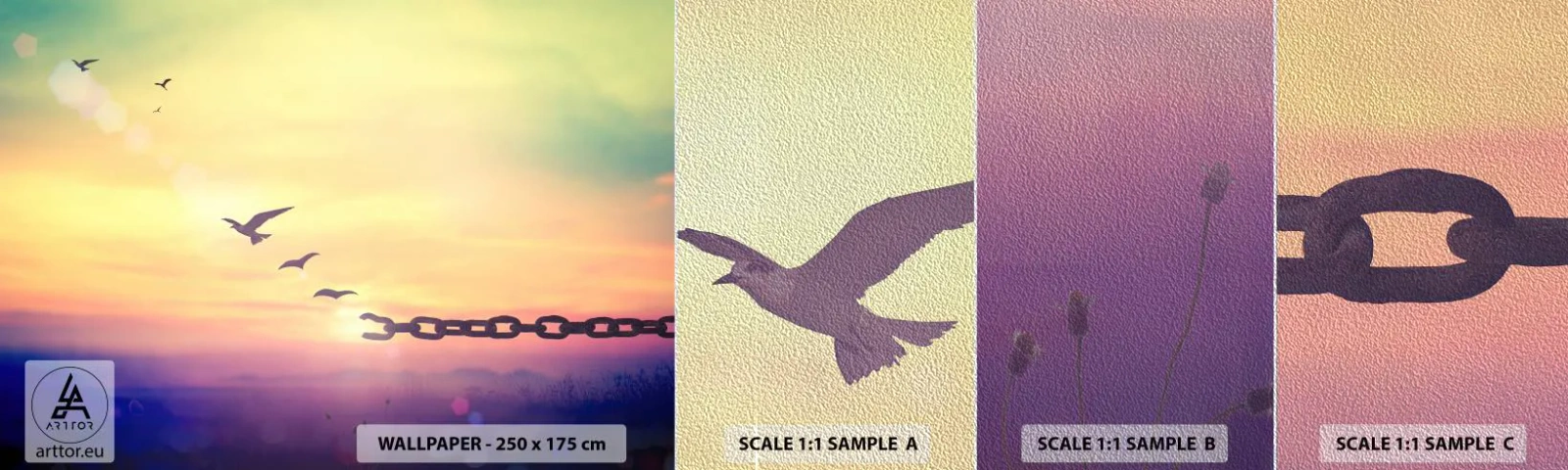 Provbit av fototapet Premium Sand - Frihetens seger - Abstraktion, Fåglar, Bit - 100x30 cm