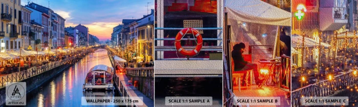 Provbit av fototapet Premium Sand - Ljusets och nöjets kväll - Stad, Milano, Italien - 100x30 cm