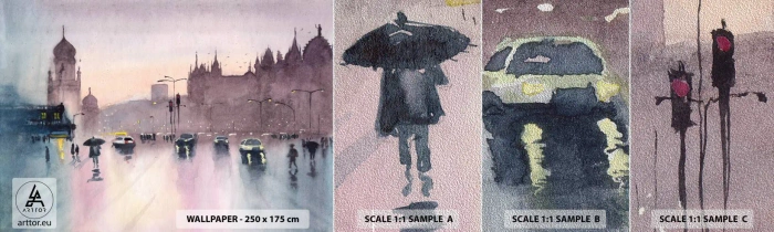 Provbit av fototapet Premium Sand - I regnig dimma - Stad, Arkitektur, Monument - 100x30 cm
