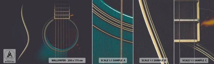 Provbit av fototapet Premium Sand - Ett ögonblick innan det ljuder - Gitarr, musik, Strängar - 100x30 cm