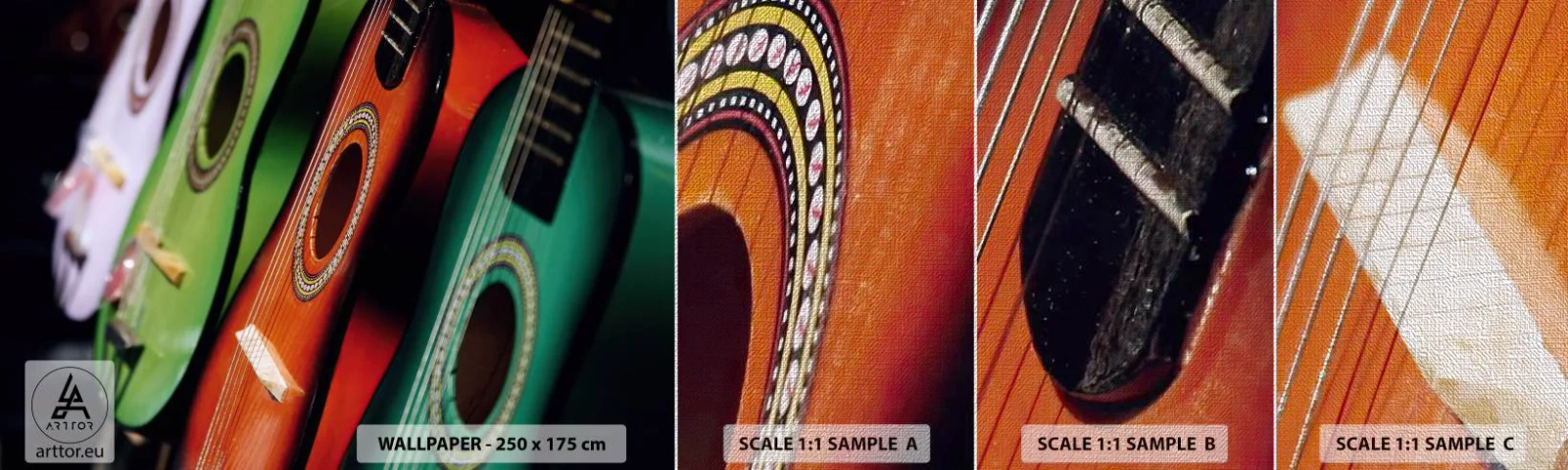 Provbit av fototapet Premium Canvas - Gitarren har flera färger - musik, Gitarr, Ett musikinstrument - 100x30 cm