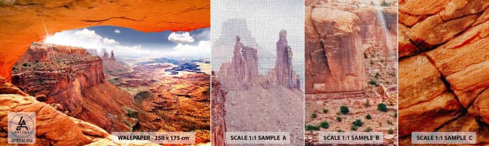 Innan du bestämmer dig för en fototapet i full storlek PREMIUM KANVAS , uppmuntrar vi dig att beställa ett materialprov i följande dimensioner:100x30 cm Tack vare provet kan du kontrollera materialets kvalitet live, se färgåtergivningen, känna ytstrukturen och bedöma tjockleken på materialet, vilket hjälper dig att fatta ett välgrundat beslut om att välja den bästa fototapeten för din inredning.