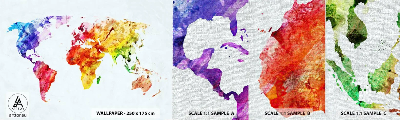 Provbit av fototapet Premium Canvas - Världens alla färger - Världskarta, Grafik, Kontinenter - 100x30 cm