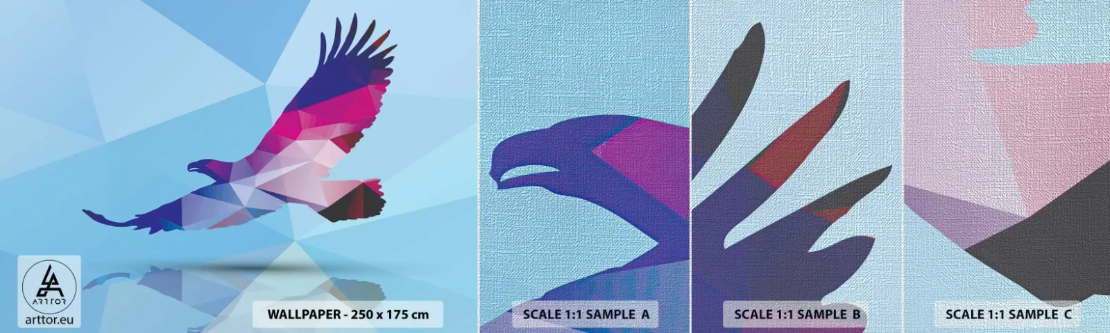 Provbit av fototapet Premium Canvas - Örn i lila kristall - Fågel, Örn, Geometrisk figur - 100x30 cm