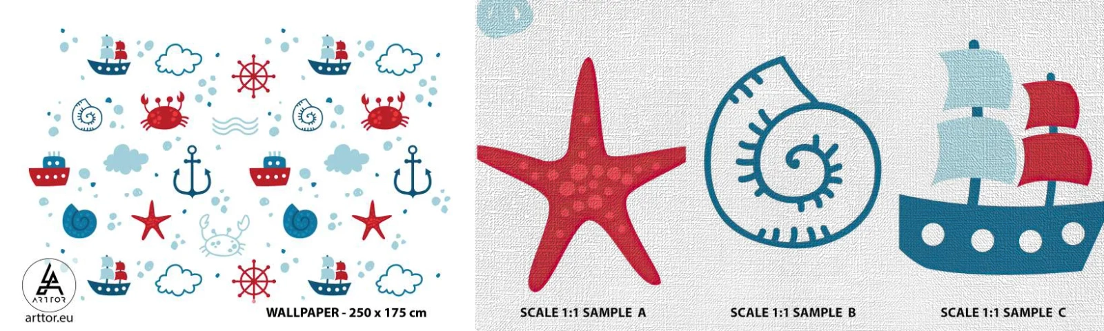 • Segling, Nautisk, Ankare, För barn, Nautical, Till barnrummet Vit blå, Nivåer