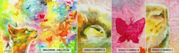 Provbit av fototapet Premium Canvas - I kattparadiset - Djur, Katt, Fjäril - 100x30 cm