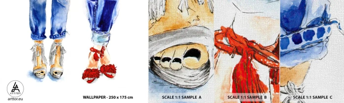 Provbit av fototapet Premium Canvas - Kanske går vi ut på promenad? - Kvinna, Mode, Skodon - 100x30 cm
