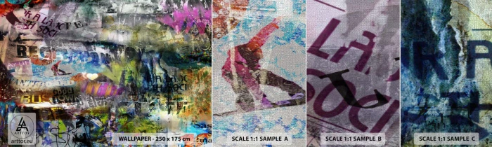 Provbit av fototapet Premium Canvas - Collage med minnen - Graffiti, Väggmålning, Modernt mönster - 100x30 cm