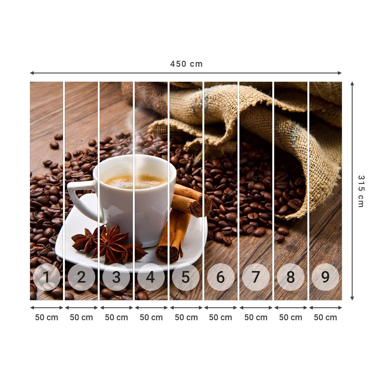 Fototapet Standard Eco - Rotsmak och -arom - Gastronomi, Kaffe, Kanel - 450x315 cm