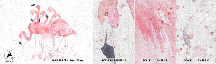 Provbit av fototapet Premium Canvas - Rosa bandet - Flamingos, Fåglar, Grafik - 100x30 cm