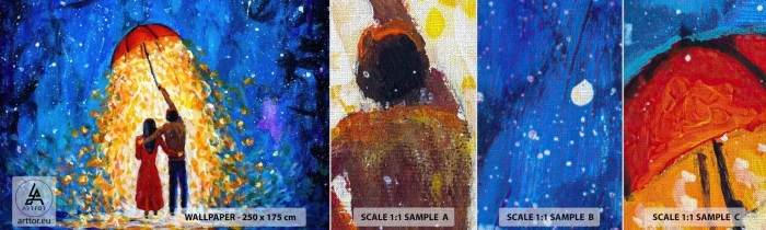 Provbit av fototapet Premium Canvas - Magi på en regnig kväll? - Romantisk, Par, Kärlek - 100x30 cm