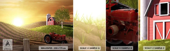 Provbit av självhäftande fototapet Deluxe Sticker - Sagolik farm - Odla, Landskap, Traktor - 100x30 cm