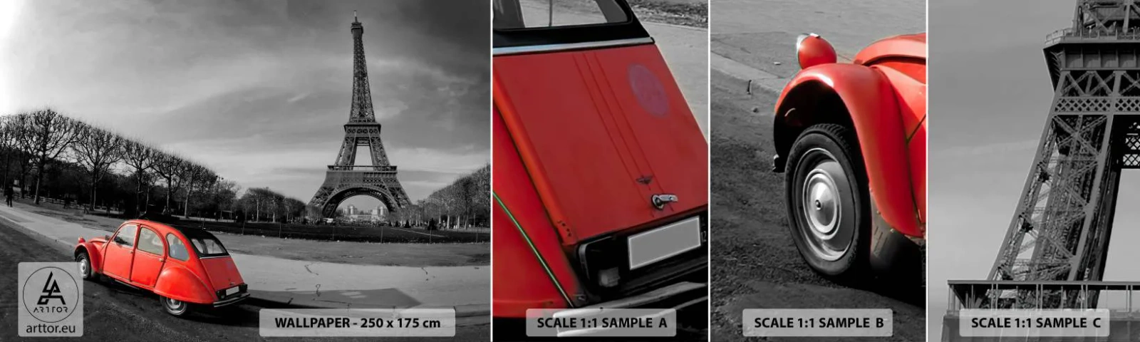 Provbit av självhäftande fototapet Deluxe Sticker - Mera parisianskt än själva Paris - Stad, Eiffeltornet, Paris - 100x30 cm