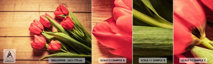 Provbit av självhäftande fototapet Deluxe Sticker - Vårförklaran - Blommor, Tulpaner, Blombukett - 100x30 cm