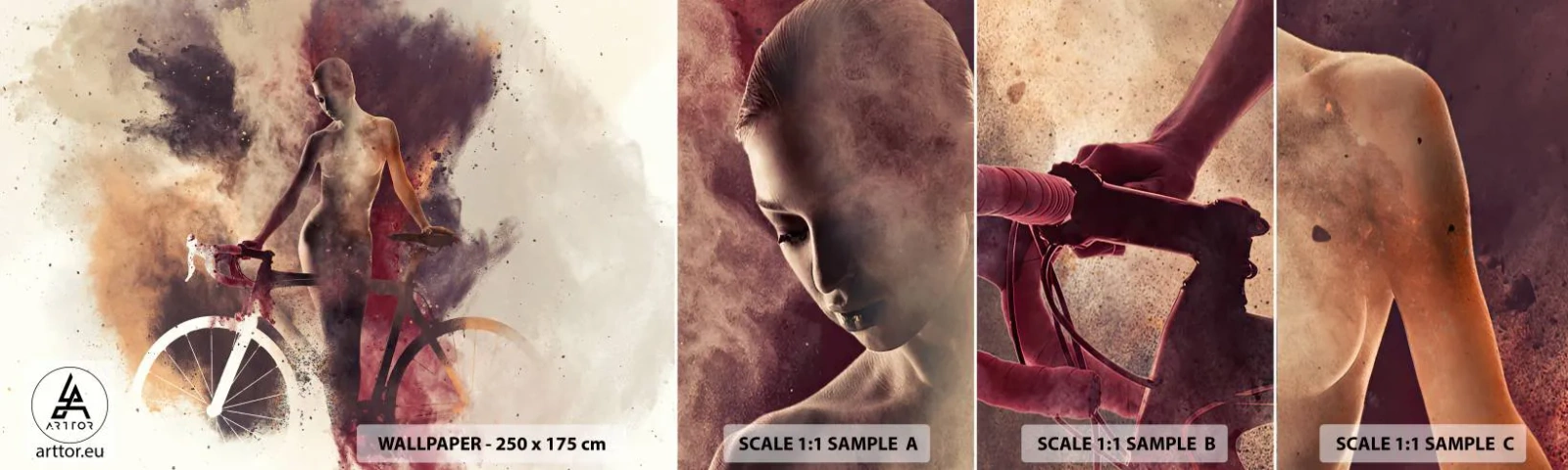 Provbit av självhäftande fototapet Deluxe Sticker - Cyklelsjäl i marmorform - Abstraktion, Kvinna, Cykel - 100x30 cm