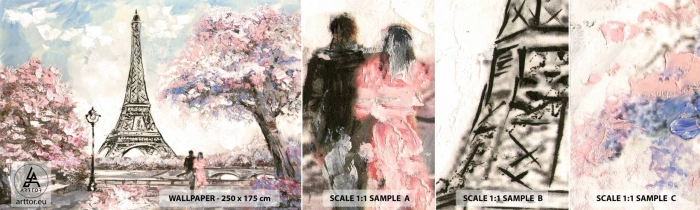 Provbit av självhäftande fototapet Deluxe Sticker - Aprilpromenad i Paris - Stad, Eiffeltornet, Park Alley - 100x30 cm