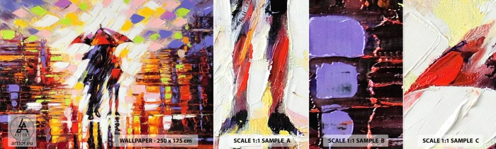 Provbit av självhäftande fototapet Deluxe Sticker - Tillsammans genom natten och regnet - Abstraktion, Förälskade par, Gå i regnet - 100x30 cm
