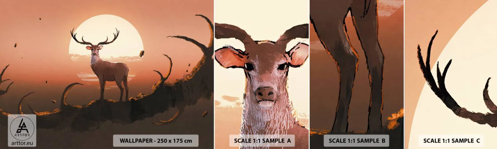 Provbit av självhäftande fototapet Deluxe Sticker - Denna natt är inte lik de andra - Abstraktion, Rådjur, Bit - 100x30 cm